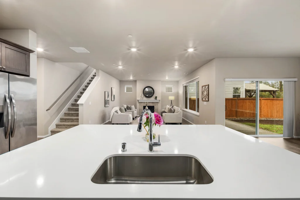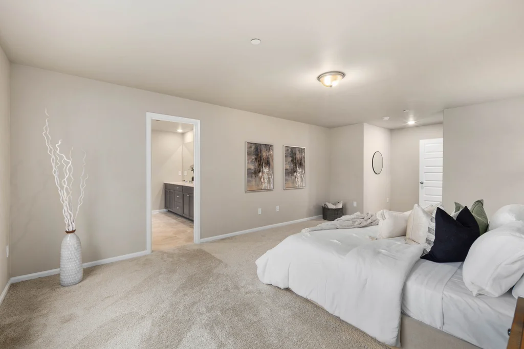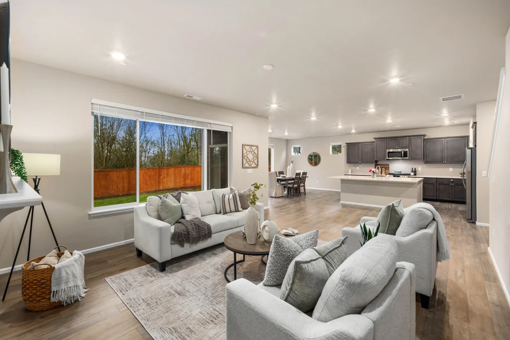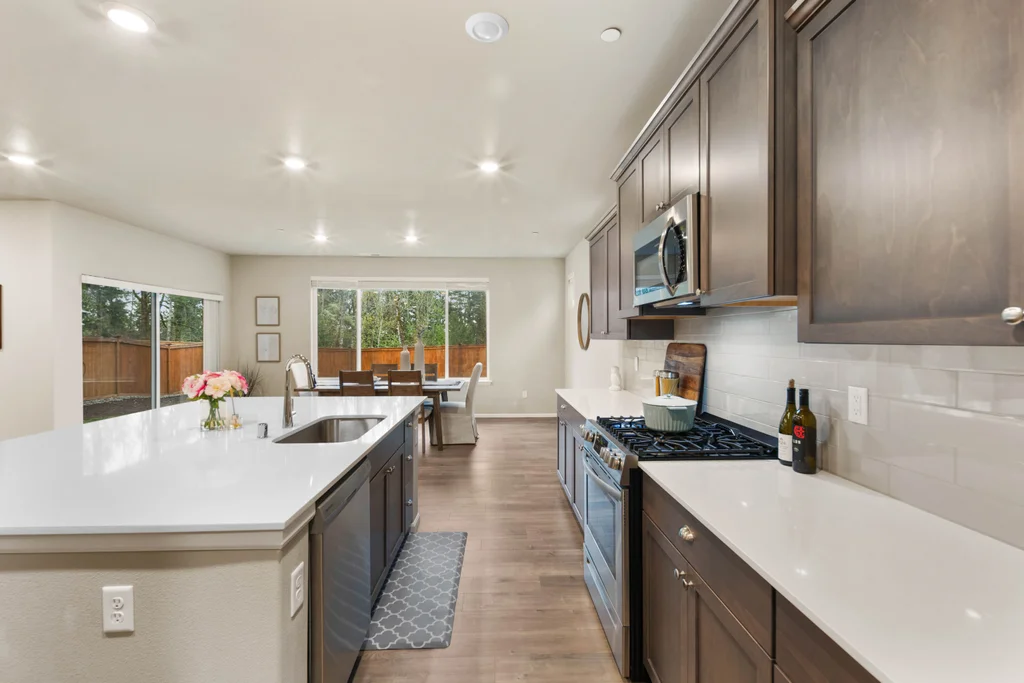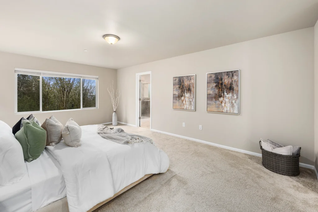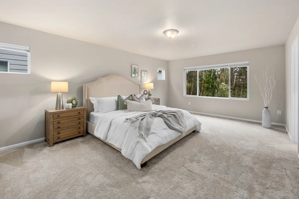 Discover serene living in at Soundview Estates. Featuring 5 bedrooms, 2.75 baths, including a luxurious primary bedroom with 5-piece en suite, large walk-in closet, and views of lush greenery, plus a main-floor bedroom with 3/4 bathroom. A spacious loft and expansive covered patio provide year-round entertaining. The 3,081 sq. ft. home boasts an oversized kitchen island with abundant cabinetry, a pantry, custom soft-close cabinets, quartz counters, stainless steel appliances, A/C, and a fully fenced yard. High-tech cable, smart home devices. Oversized garage w/storage. Situated on a prime land at the end of the street, overlooking a greenbelt with nearby trails and a playground - an ideal setting for comfort, seclusion, and modern living.
