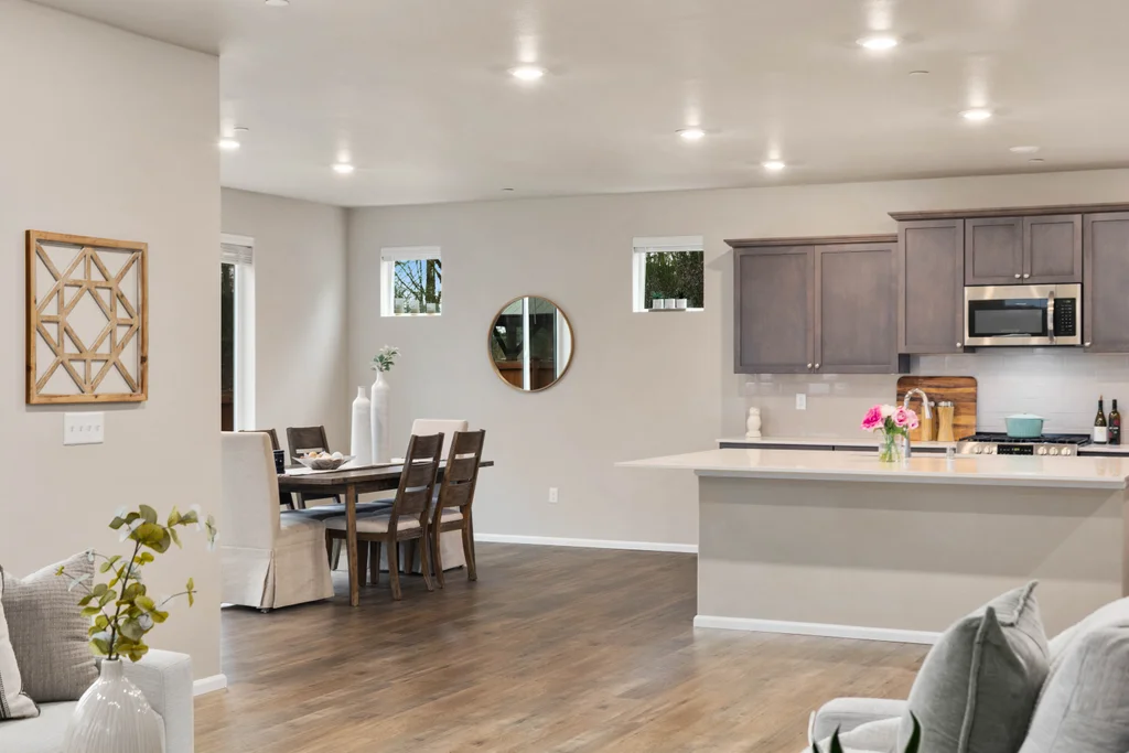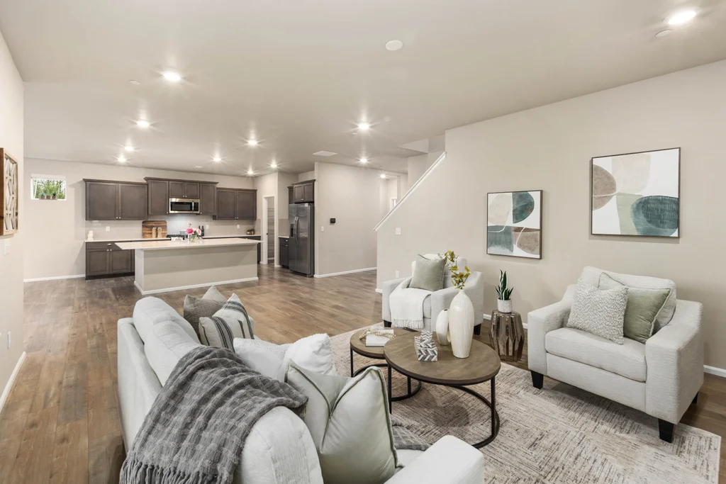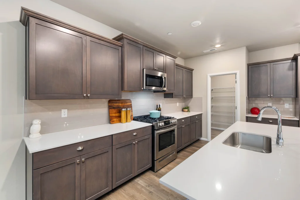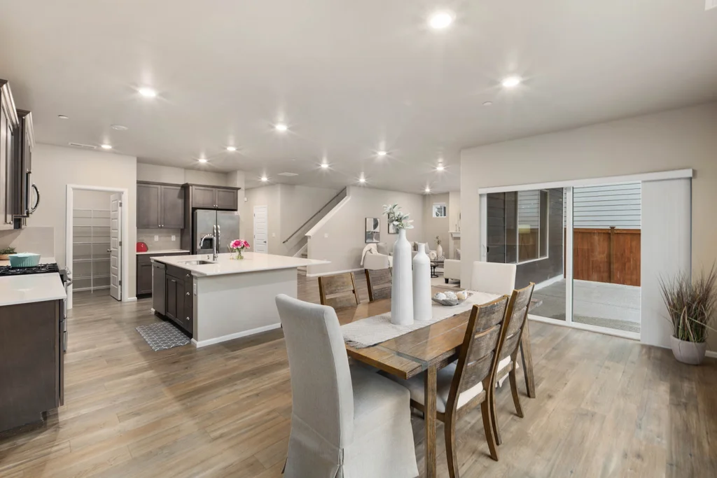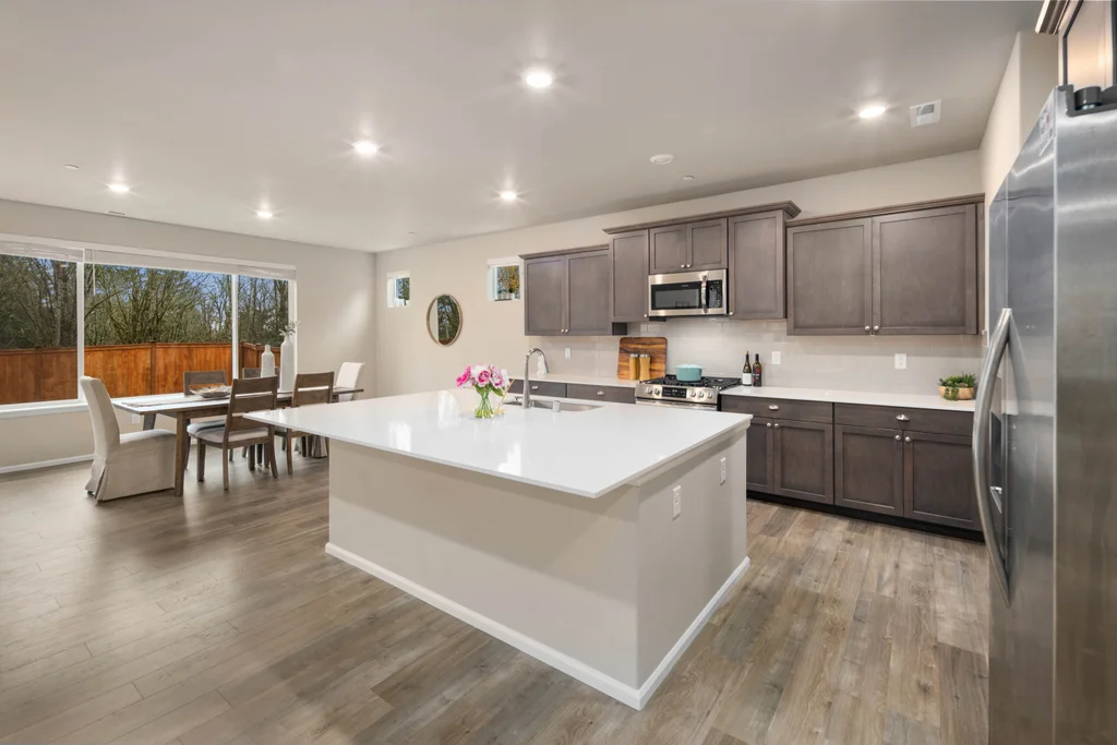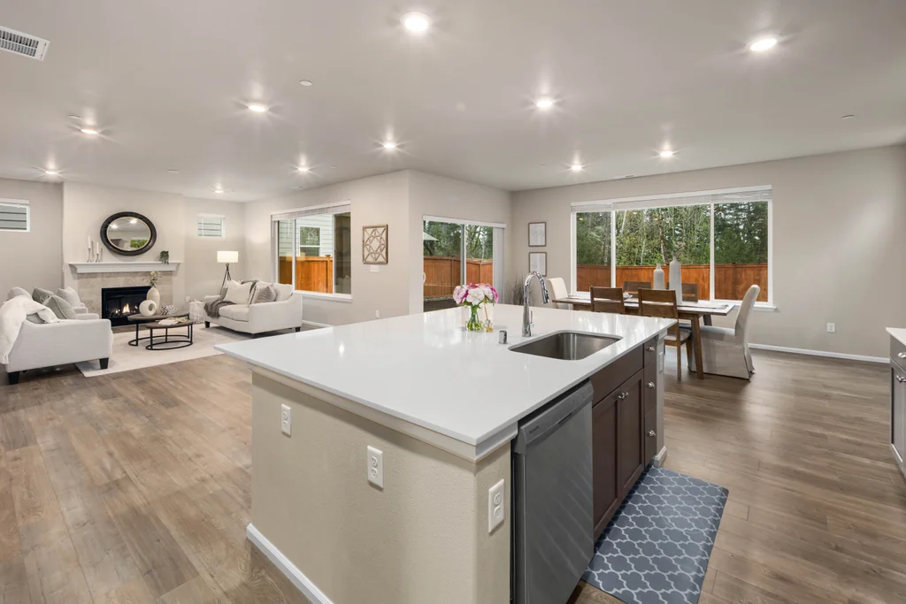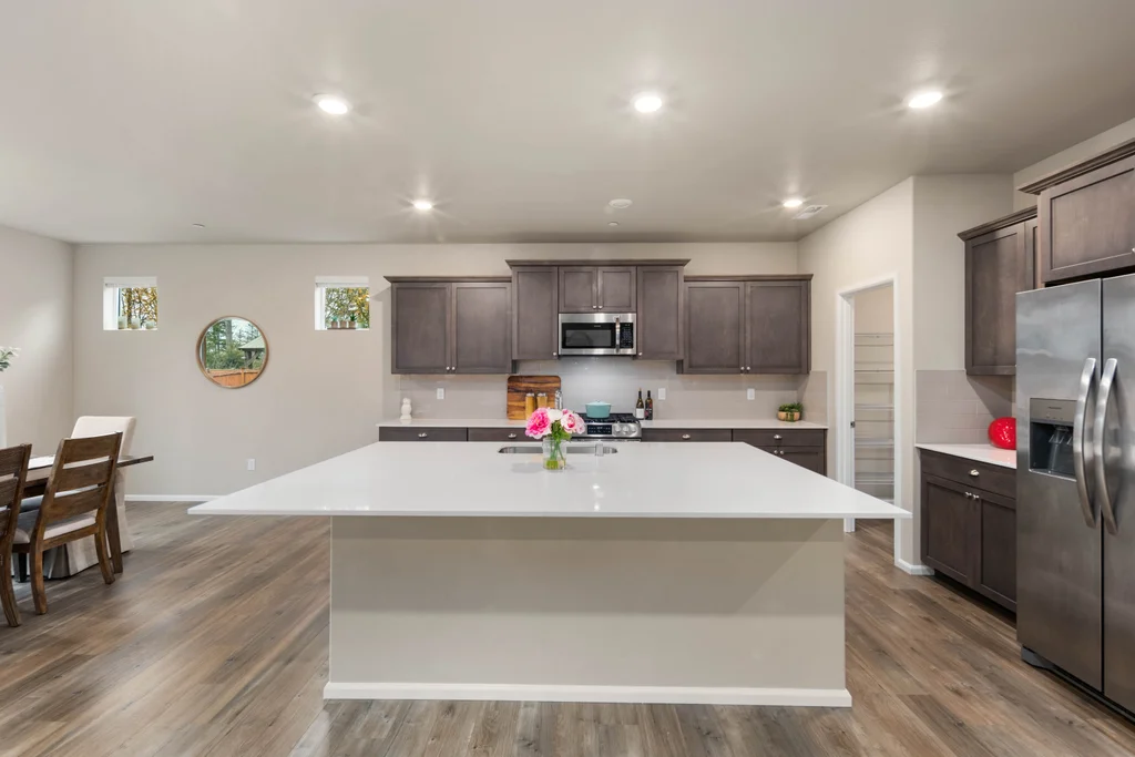 Discover serene living in at Soundview Estates. Featuring 5 bedrooms, 2.75 baths, including a luxurious primary bedroom with 5-piece en suite, large walk-in closet, and views of lush greenery, plus a main-floor bedroom with 3/4 bathroom. A spacious loft and expansive covered patio provide year-round entertaining. The 3,081 sq. ft. home boasts an oversized kitchen island with abundant cabinetry, a pantry, custom soft-close cabinets, quartz counters, stainless steel appliances, A/C, and a fully fenced yard. High-tech cable, smart home devices. Oversized garage w/storage. Situated on a prime land at the end of the street, overlooking a greenbelt with nearby trails and a playground - an ideal setting for comfort, seclusion, and modern living.