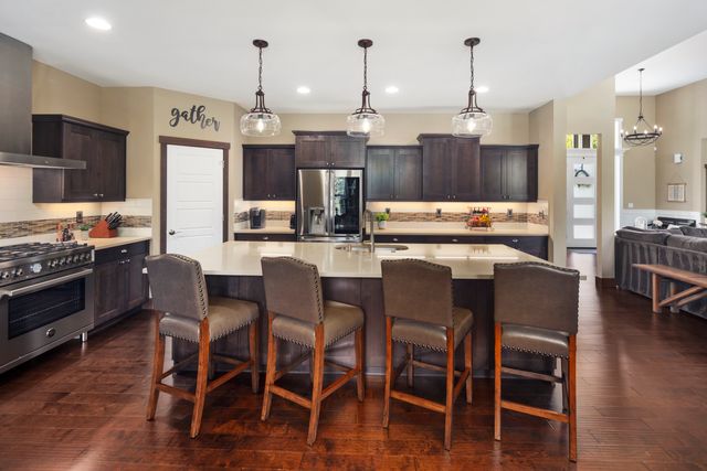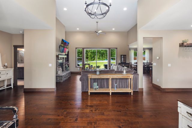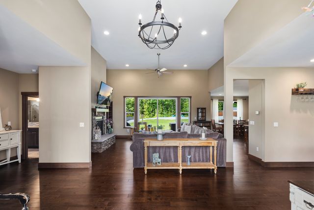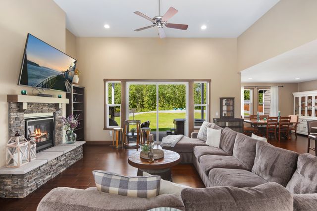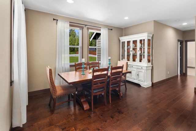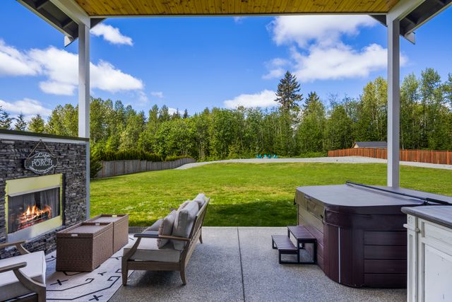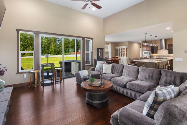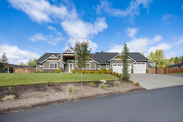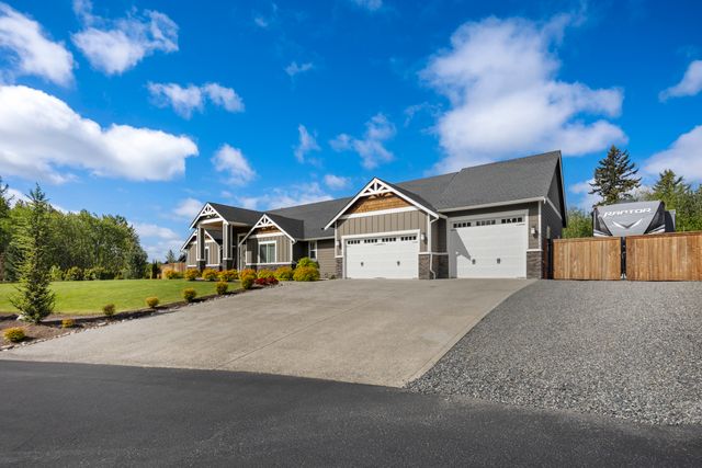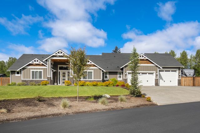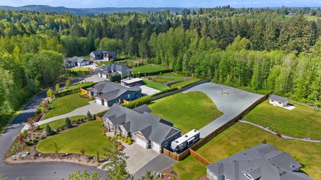 Welcome to the Reserve at Dutch Hill, a gated community adjacent to the Snohomish Golf Course. This stunning rambler, exceeding the appeal of new builds, sits on a generous 1.08-acre lot, fully fenced flat lot. Featuring a three-car garage w/plenty of space in the third bay. Inside, you'll find vaulted ceilings in living room & a cozy fireplace, complemented by a modern open-concept kitchen equipped w/ SS appliances, quartz countertops, and a sizable island. With four spacious bedrooms, including a luxurious master suite boasting a large ensuite bathroom & walk-in closet. An extra bonus room offers flexibility for various purposes. Outdoors, a covered patio w/fireplace. Room for RV with hookups. Heat pump/AC. Min. from Historic Snohomish.